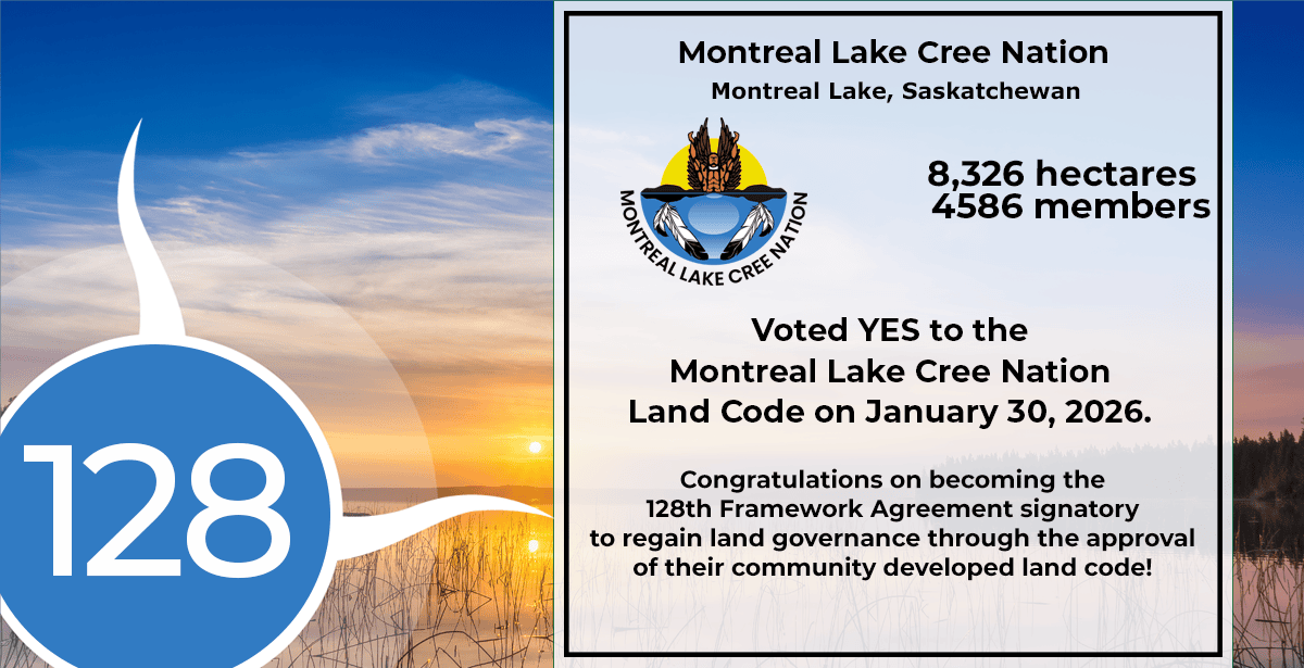 Montreal Lake Cree Nation (SK) has voted to establish the Montreal Lake Cree Nation Land Code, regaining governance over their reserve lands, natural resources, and environment.